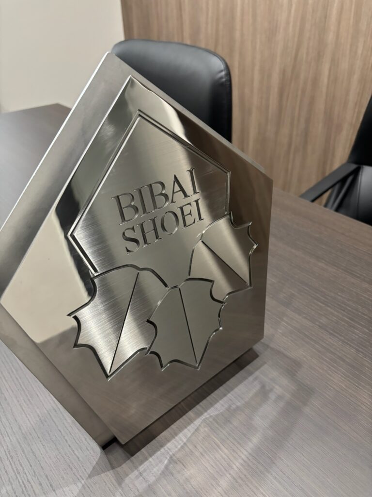 本エンブレムは、当社の加工技術を活かし、材料の選定から設計・製作・仕上げに至るまで一貫して社内で行ったものです。